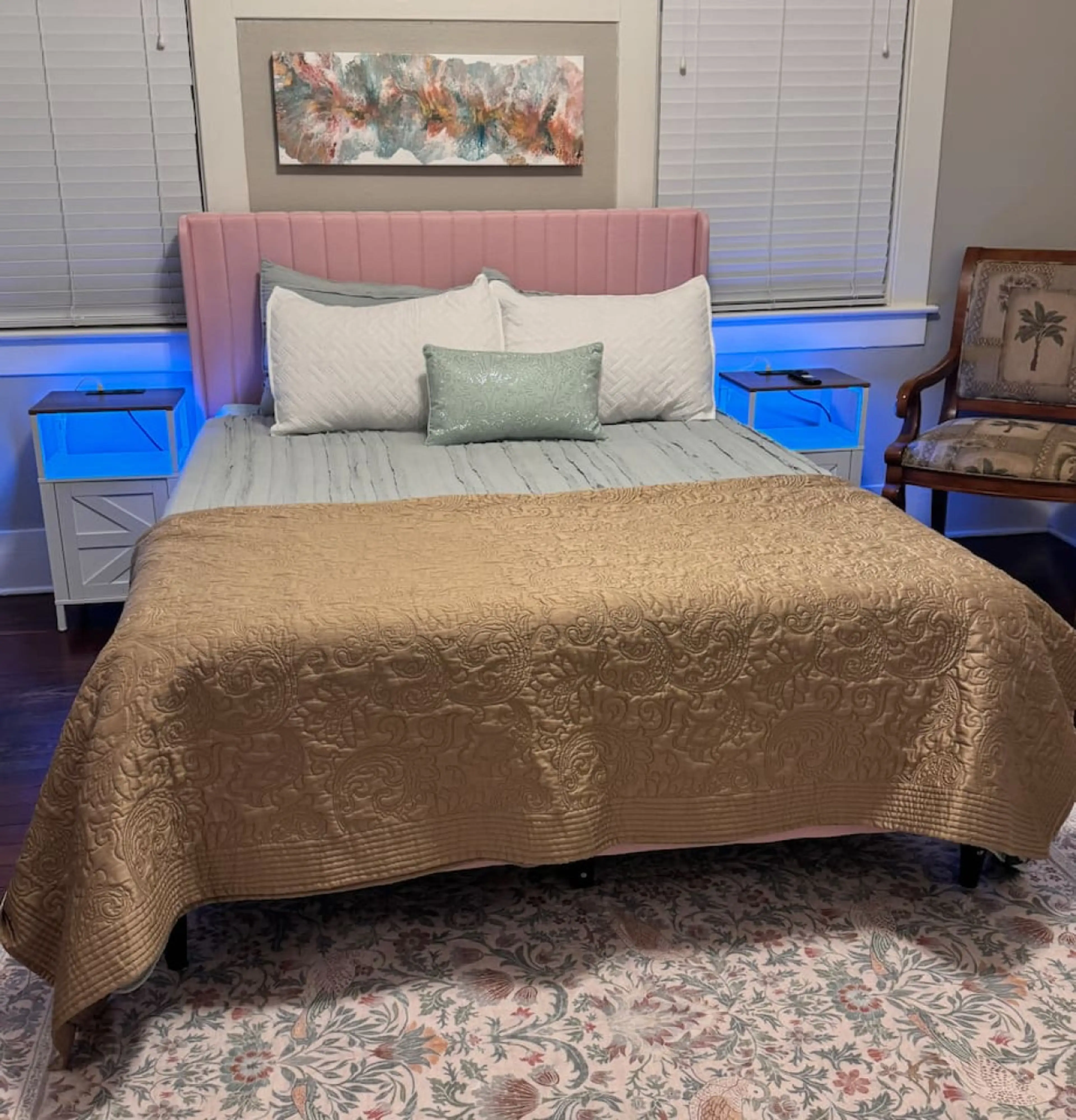 While it’s pink like a flamingo on the outside, inside is decorated in royal blues to remind you of the rich culture of Louisiana. The property is located in historic Spanish Town, which is just 3 miles from Tiger Stadium and half a mile from the State Capital. Guests can enjoy a care-free walking a...